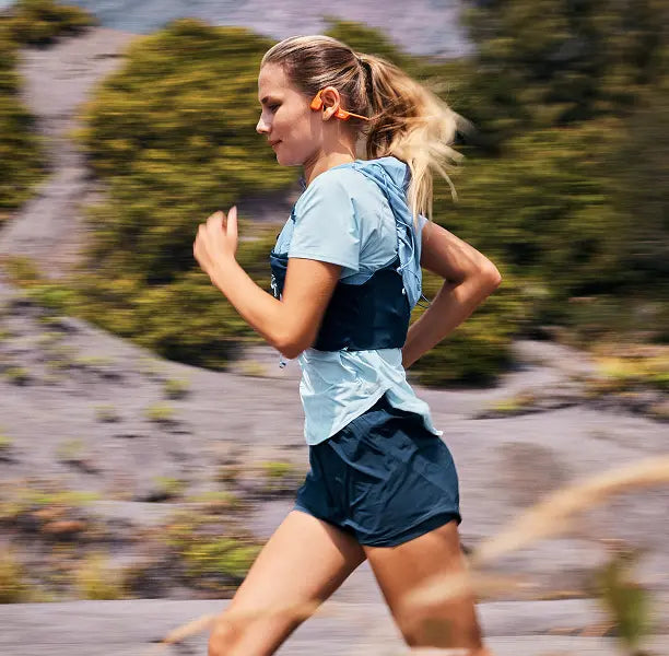 Onze open-ear koptelefoons zijn ontworpen met een veilige, lichte pasvorm en ergonomische structuur, waardoor ze stevig op hun plaats blijven, zelfs tijdens sprints, trailruns of langeafstandssessies.