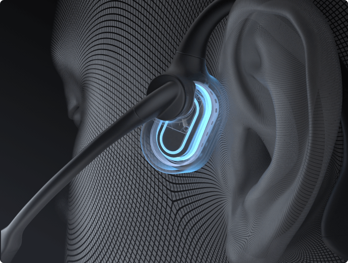 De OpenComm is uitgerust met Qualcomm 3024 chips die meer complexe geluiden en een precieze afstemming ondersteunen. De geluidskwaliteit wordt verder versterkt door de 7e generatie bone conduction technologie die het mogelijk maakt om midden- en hoge frequenties te horen met totale helderheid, perfect voor de menselijke stem.