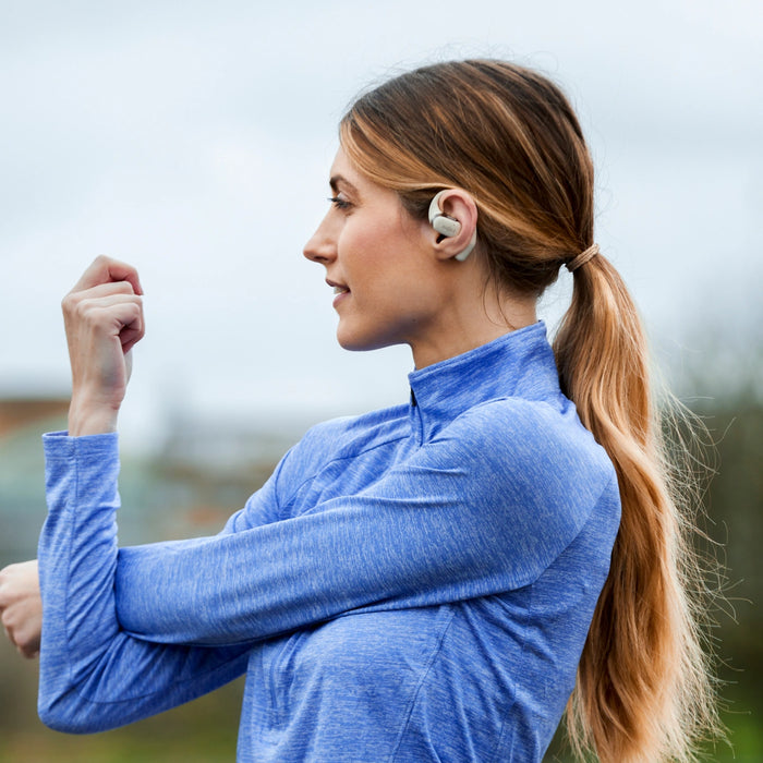 De OpenFit zet het Shokz open-ear concept voort met een compact ontwerp. De OpenFit is rond het oor gevormd, zodat het oor open blijft en je met de wereld verbonden blijft.