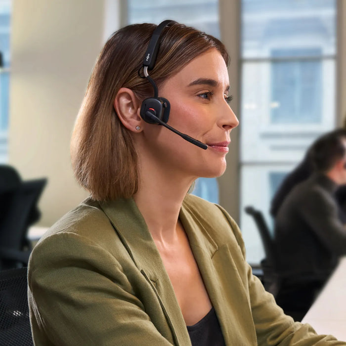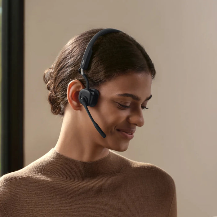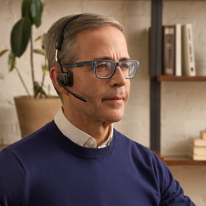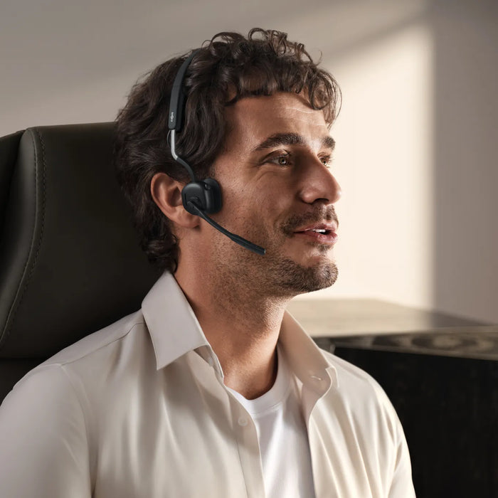 OpenMeet is voorzien van het Shokz´ kenmerkende open-ear-design. Krijg de hele dag comfort en vergeet het ongemak en de benauwdheid van traditionele on-ear en over-ear headsets.