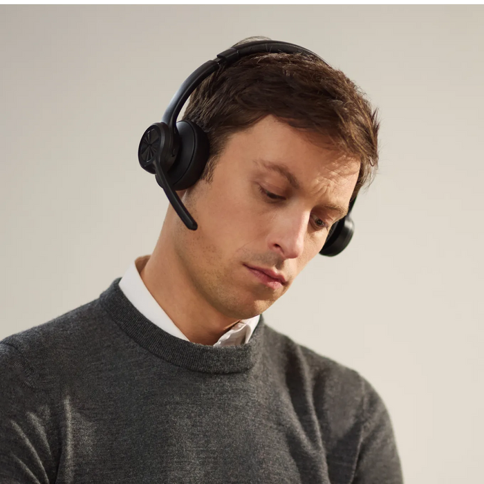 Gebruik de headset 15 uur3 snel opladen met USB-C. - Met maar 5 minuten krijg je 2 uur gesprekstijd4. Zo blijf je de hele dag verbonden. Of sluit uw OpenMeet aan. En laad hem en zet je gesprekken ononderbroken voort.